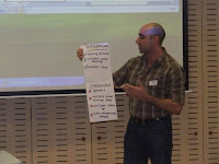 A couple of unnecessary lectures came before the main event of the day: presentation of the ideas. About 30 people lined up and waited for their 2 minute chance to present their idea and persuade their peers to work on it. The presenters couldn’t use PowerPoint, and had to rely on their public speaking abilities, which some times resulted in comic performances. I cheated a bit by preparing an album with the main points of the presentation. I received a warm reception – the audience was amused by the format.