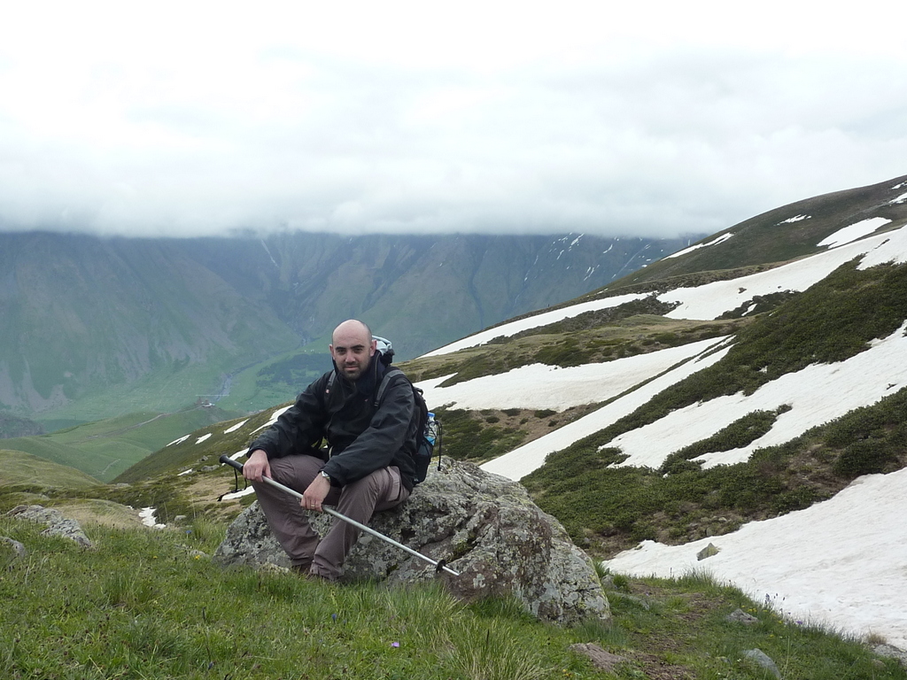 The next day I planned to reach mount Kazbek’s Gergeti glacier, visiting the Tsminda Sameba (“holy trinity”) church on the way. Exhausted after yesterday’s hike Oxanna stayed back to rest and I set out on the way with Ian, an English guy we met earlier.