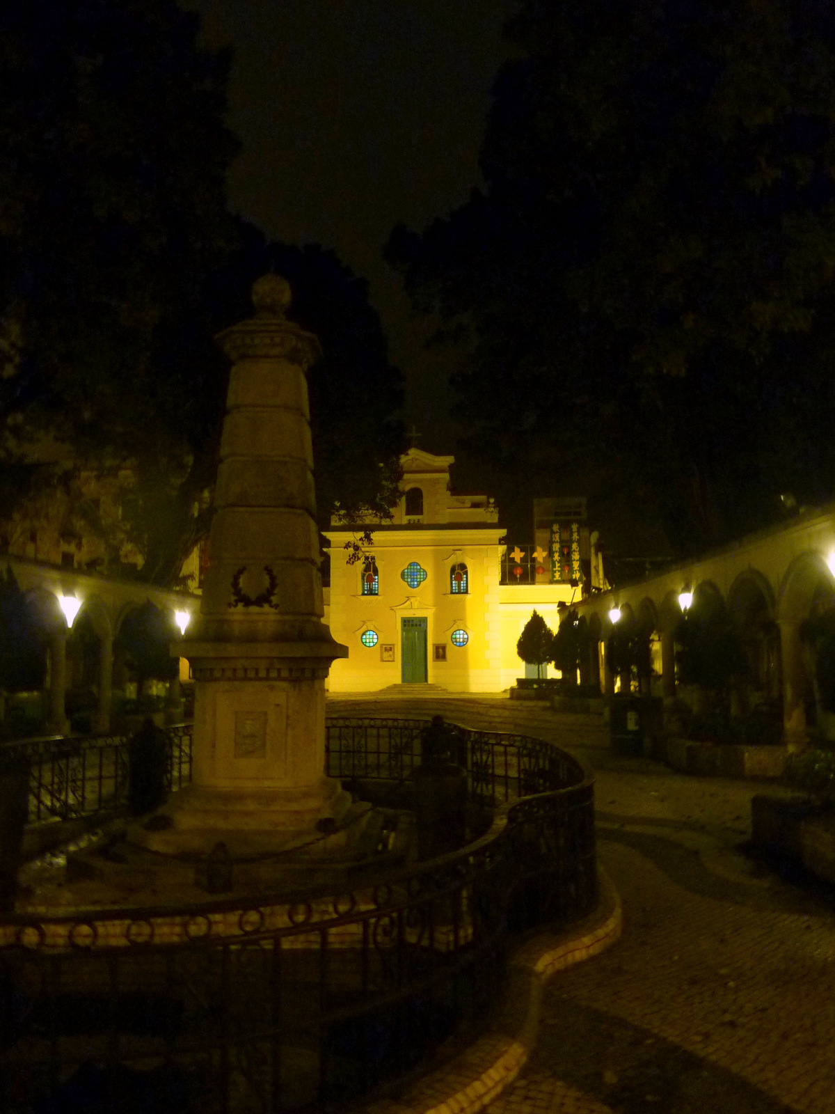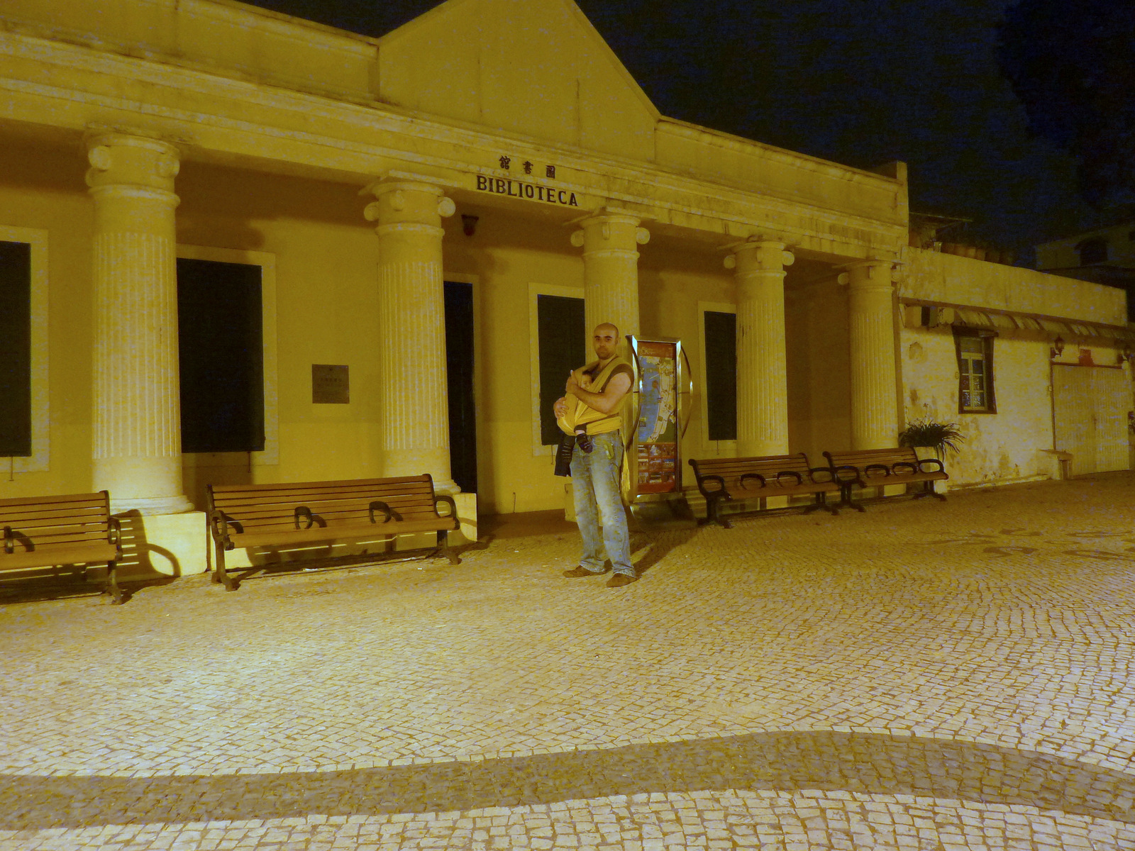 But our baby son had other plans – confused by the time zone difference he woke up happily at midnight. To exhaust him to sleep I put him in a sling and went out to explore Coloane village at night time.
